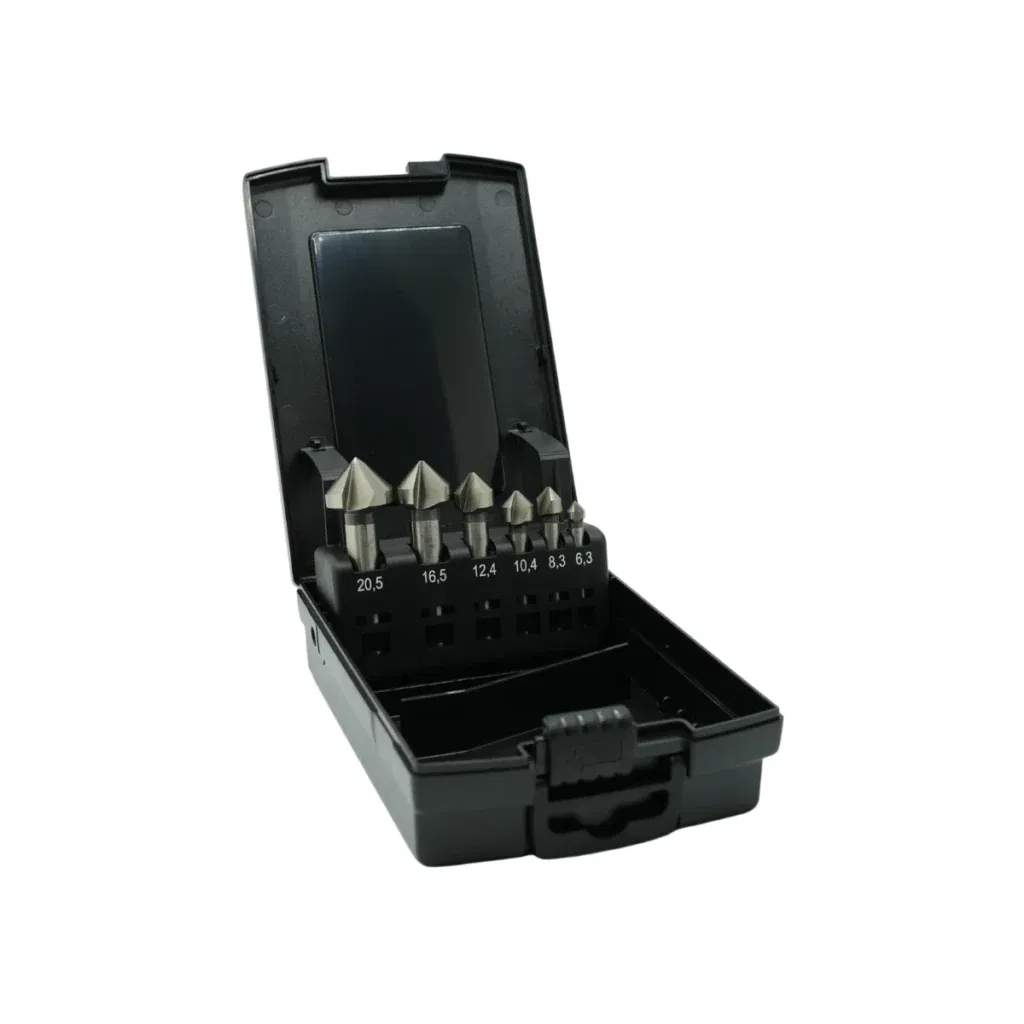 Voordat u een verzinkboor set aanschaft is het handig om in te schatten hoe diep en hoe groot de gaten moeten zijn. Onze verzinkborensets zijn gemaakt volgens DIN335 standaarden. Ze beschikken over een strakke afwerking, hierdoor krijgt u een mooi afgewerkt oppervlak. Onze verzinkboren sets zijn handig te bestellen als 6-delige set met de afmetingen: 6,3 / 8,3 / 10,4 / 12,4 / 16,5 en 20,5 mm.