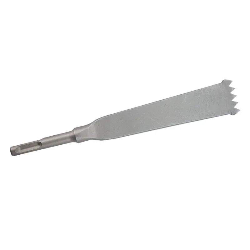 Een tegelbeitel in een korte uitvoering met een SDS Plus aansluiting. Breedte 75 mm, lengte 165 mm.